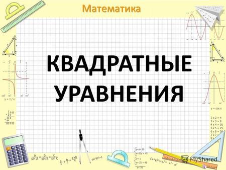 Квадратное уравнение — уравнение вида ax2 + bx + c = 0, где a, b, c — некоторые числа (a ≠ 0), x — неизвестное. называется первым коэффициентом; называется вторым коэффициентом; — свободным членом.