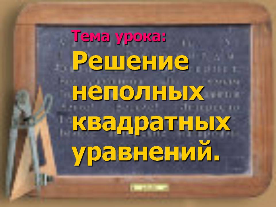 Квадратное уравнение называется неполным, если хотя бы один из коэффициентов и равен нулю. Замечание: Любое квадратное уравнение можно решить по формулам для корней квадратного уравнения.