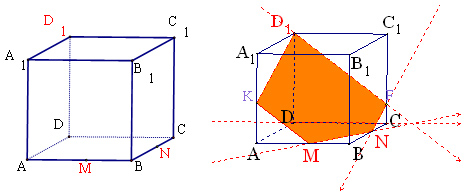 Ребята, перед вами пример неправильного построения сечения куба АС1 плоскостью, проходящей через заданные точки N, C, D1.
