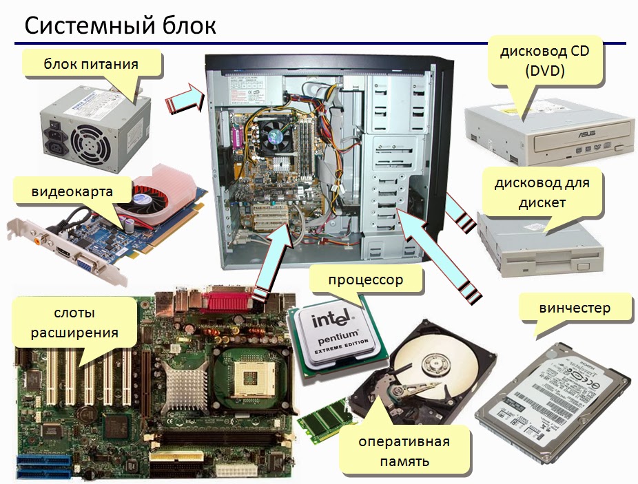 Основные составляющие системного блока: